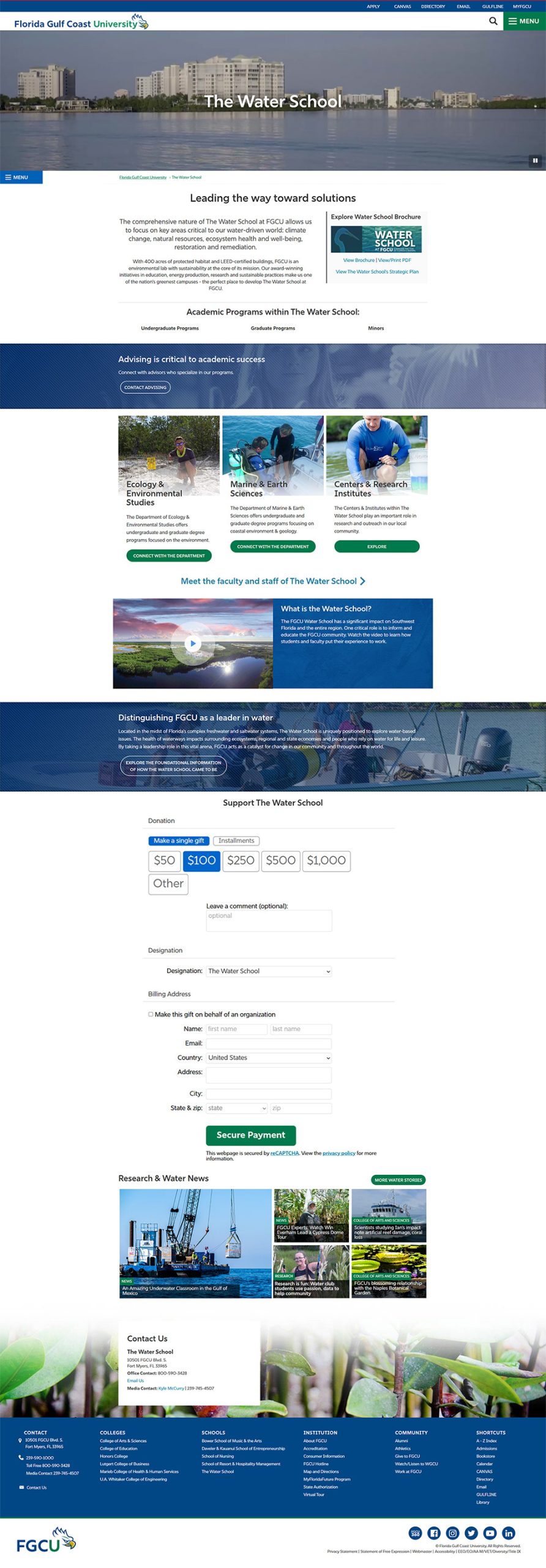 Transforming FGCU’s newest academic unit into a high-performing, student-focused digital experience that supports water sciences, improves usability, and enhances organic search.